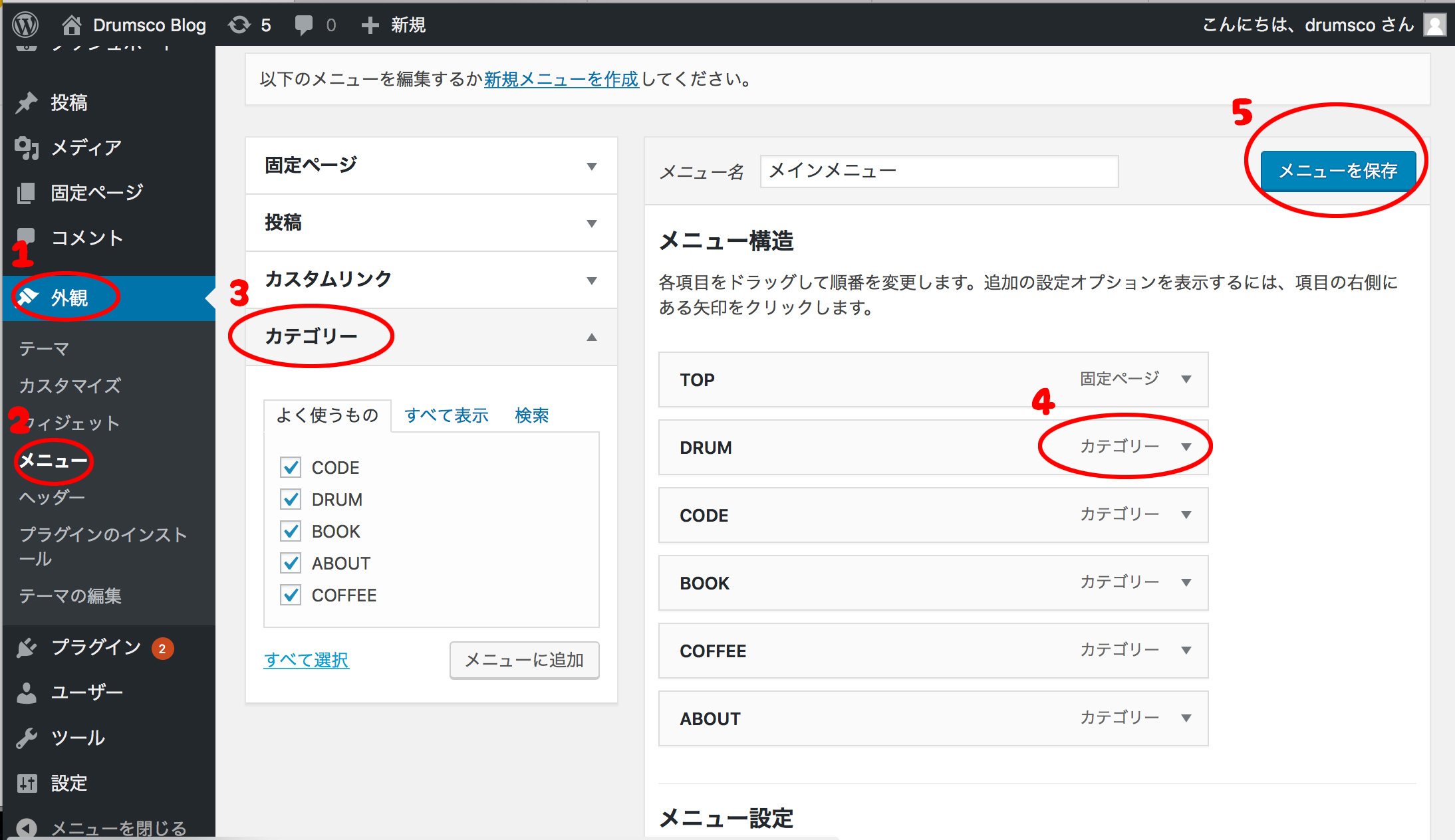メニューにカテゴリーを表示させる 2022/3/3 MANAVI WordPressのページを作ったことがなかったDrumscoはメニューを表示させるのにも2日間かかったのでここに書き残しておきます。 ...